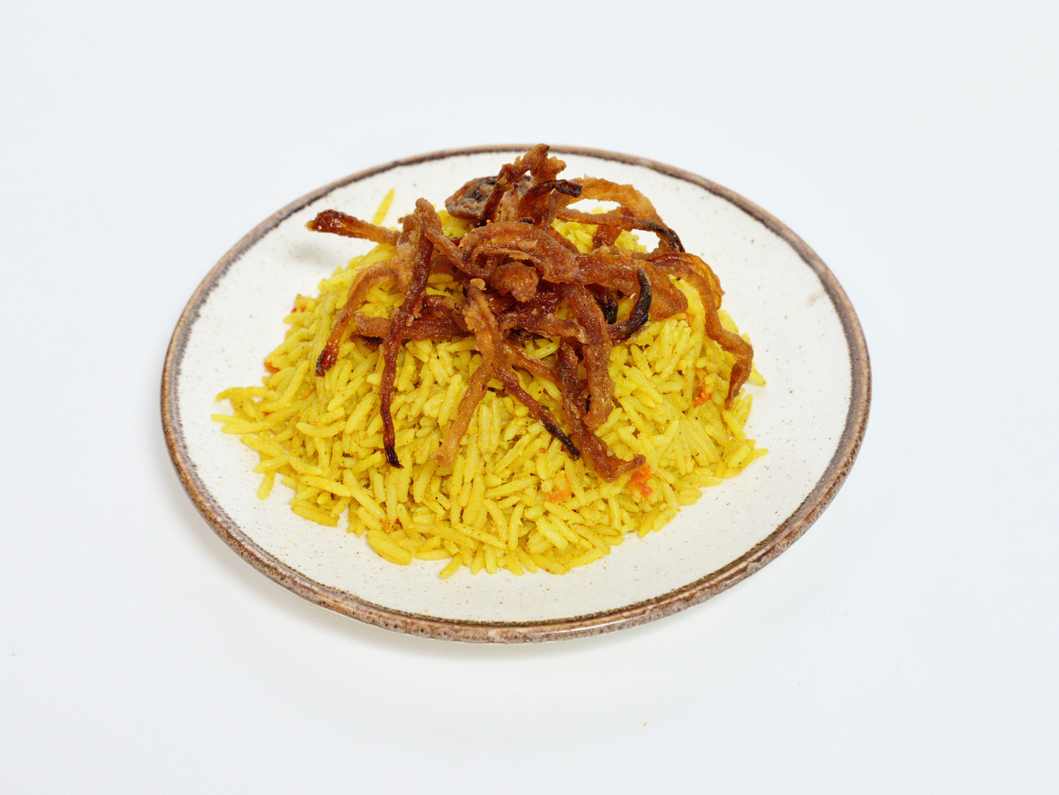Market-fresh fish of the day roasted with caramelised onions and served over fragrant rice.