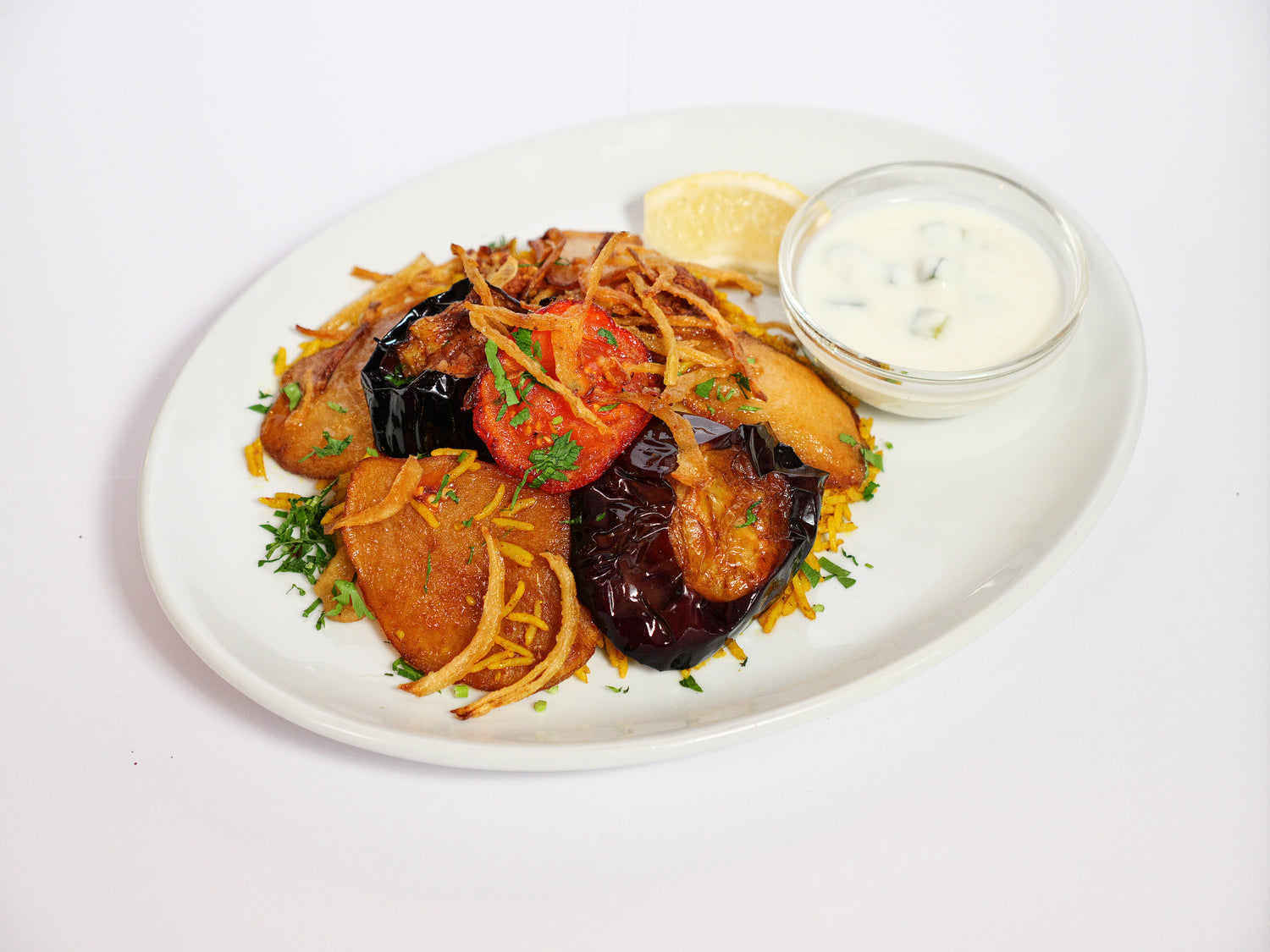 Our signature mix of kafta, lamb fillet, and one lamb cutlet with rice and pita.